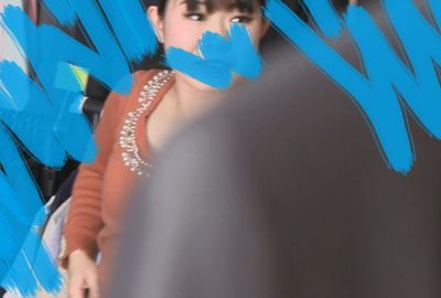 洋服のお手入れに夢中のお姉さんの胸チラ・乳首チラを盗撮!