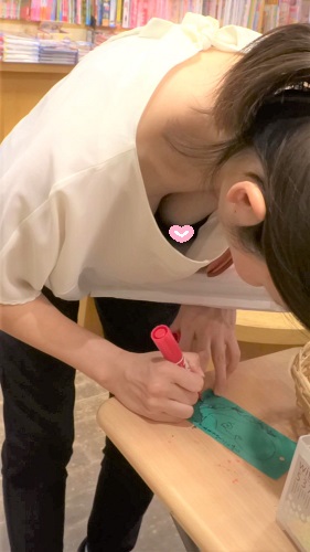 お子様と七夕の短冊にお願い事を書いておられます。