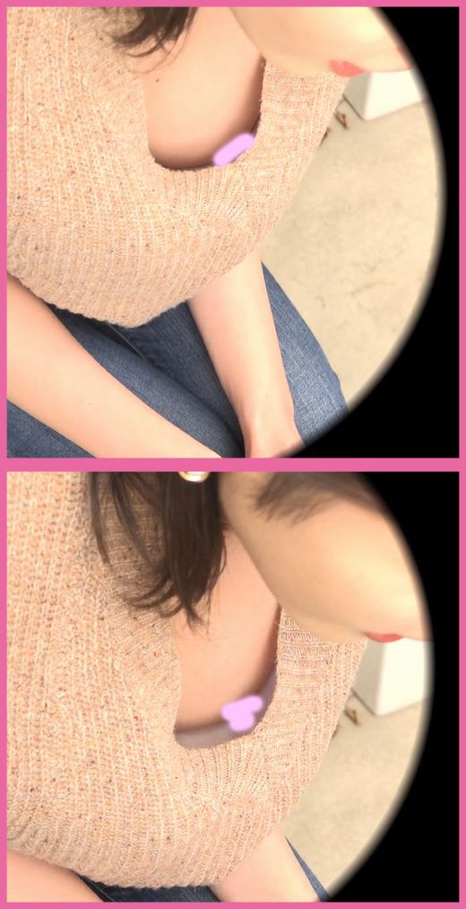 先端を中々捉えきれませんでしたが、後半前かがみで夢中になる際に、ブラの隙間が生まれました!!