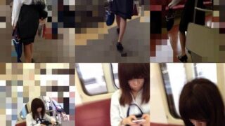 パンチラ盗撮風 通学途中の可愛い女子大生の電車内逆さ撮りパンチラ!
