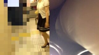パンチラ盗撮風 買い物中のOLを逆さ撮りパンチラ!ピンクの水玉で可愛いパンティーが!