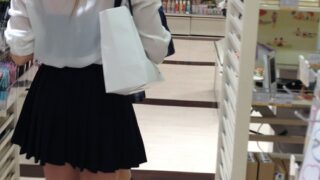 盗撮風シュチュ スカートを限界まで短くしているギャル女子校生のパンチラを盗撮!