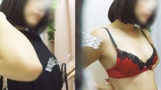 盗撮風シュチュ 美人お姉さんのブラ試着&パンチラを着替えを盗撮!