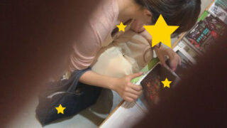 盗撮風シュチュ ロリ人妻2人の胸チラ&乳首を盗撮!とあるベ●マサークルの風景{vol.53}